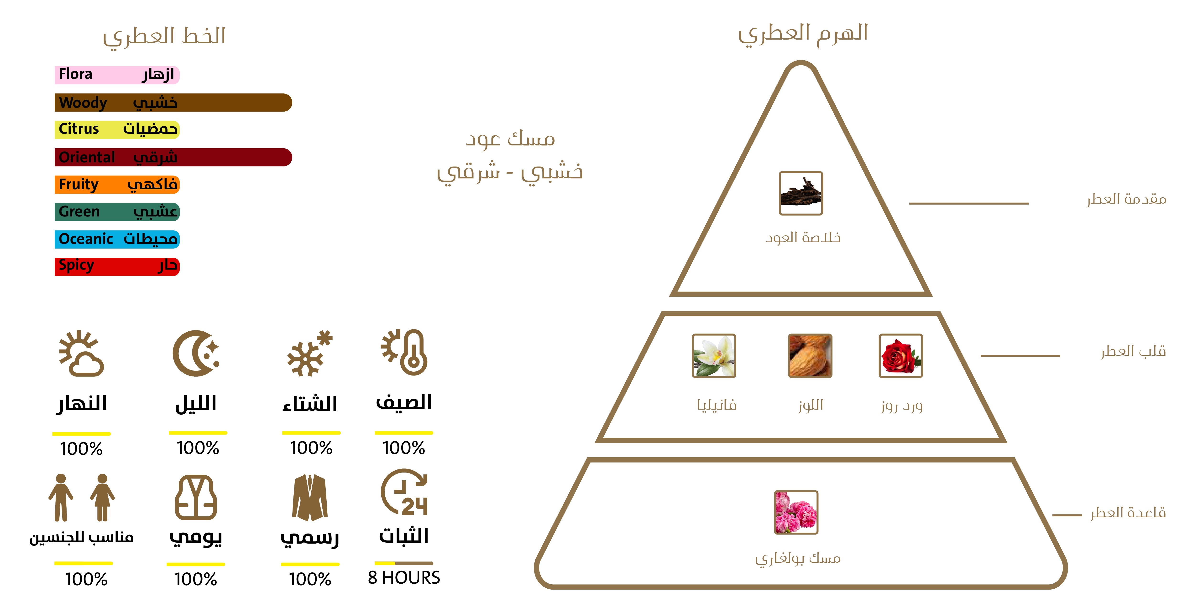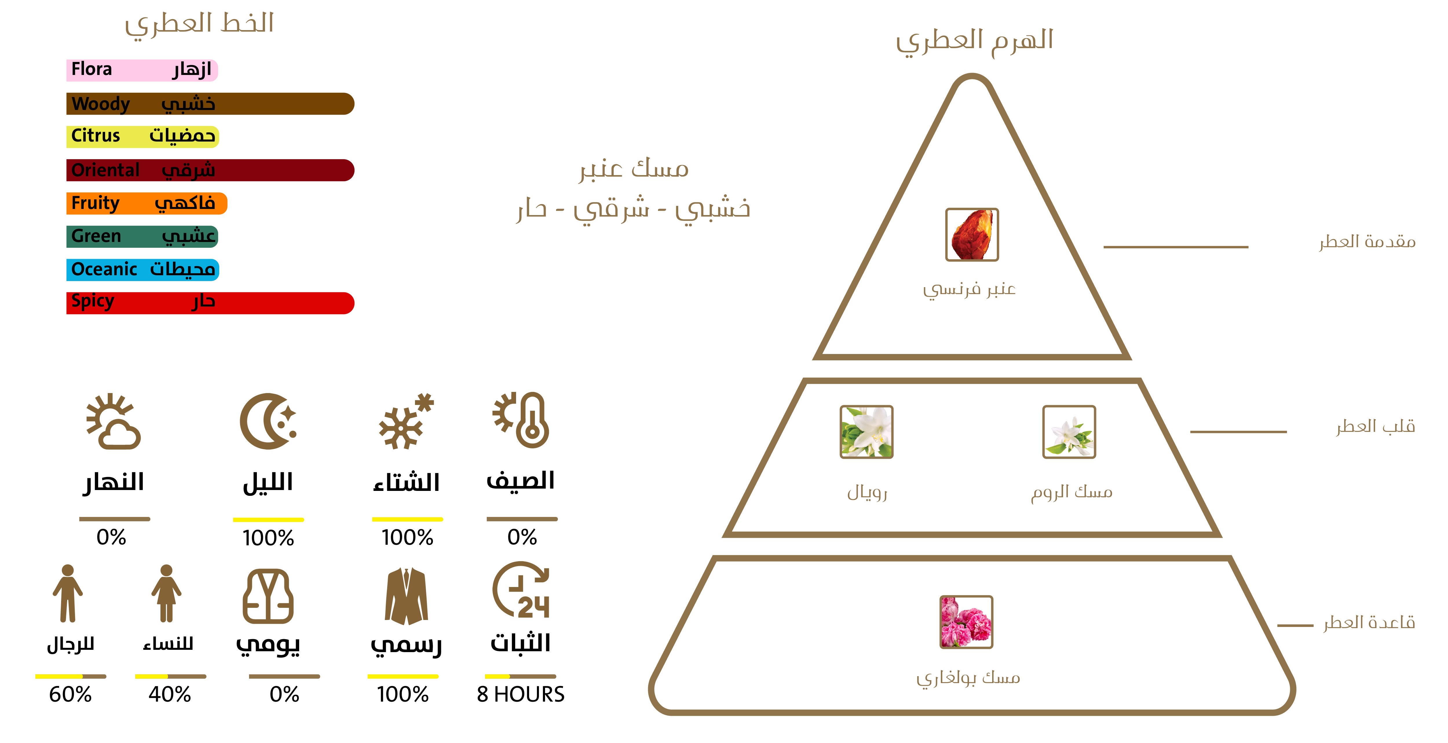 هو عطر شعر يغمرك بالعطر والنور. ينقلك إلى عالم من العنبر الأصيل والنادر. تشعر بأنك في قصة سحرية ، حيث تستكشف كنوزاً من الذهب واللؤلؤ، مسك يشعرك بالفضول!